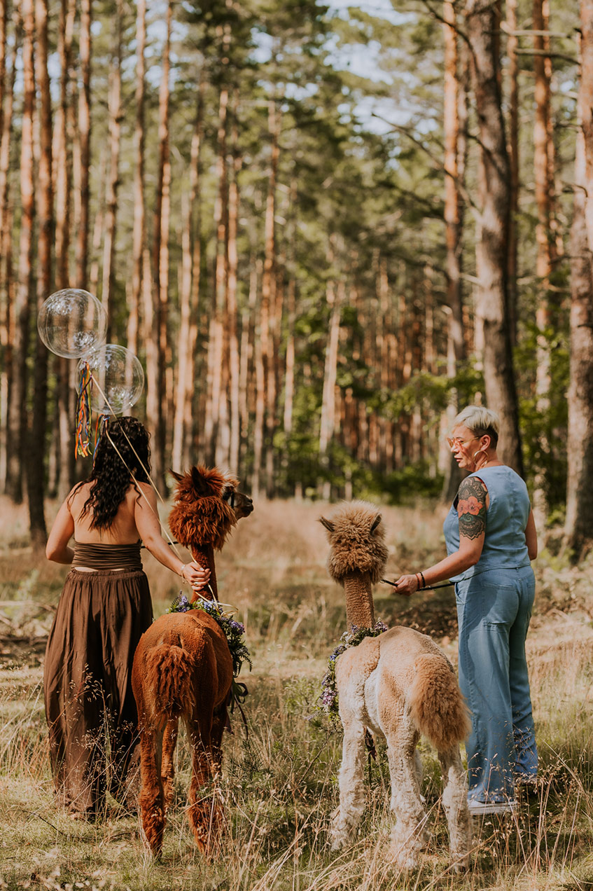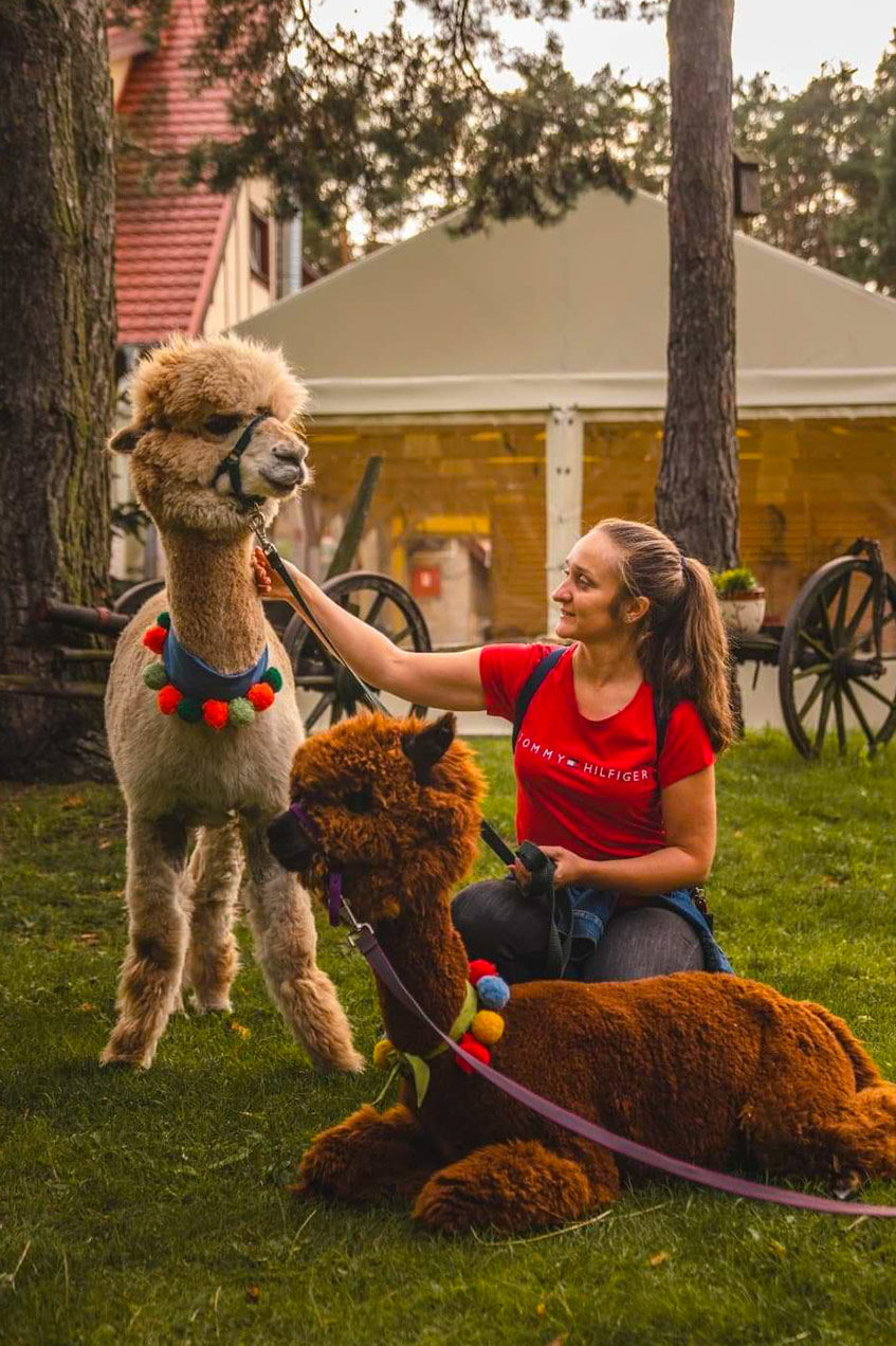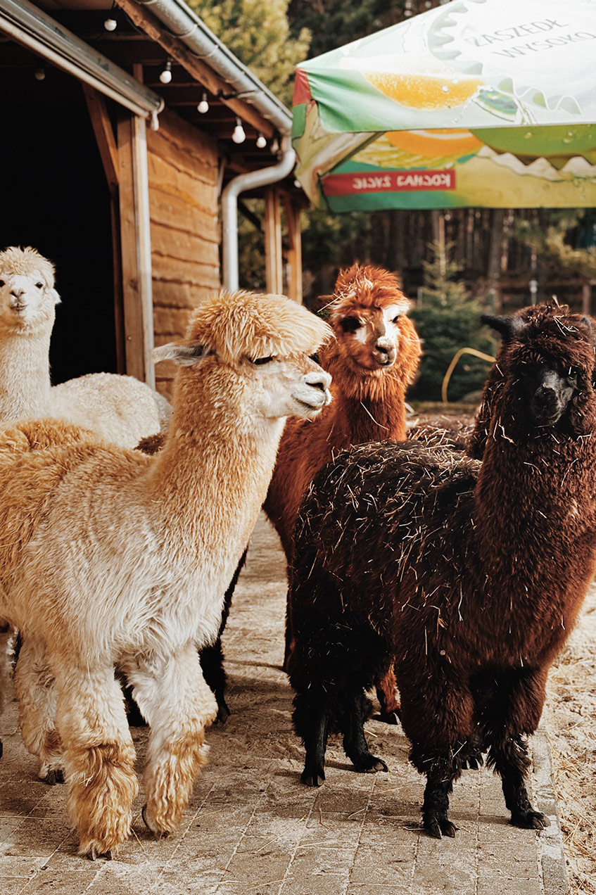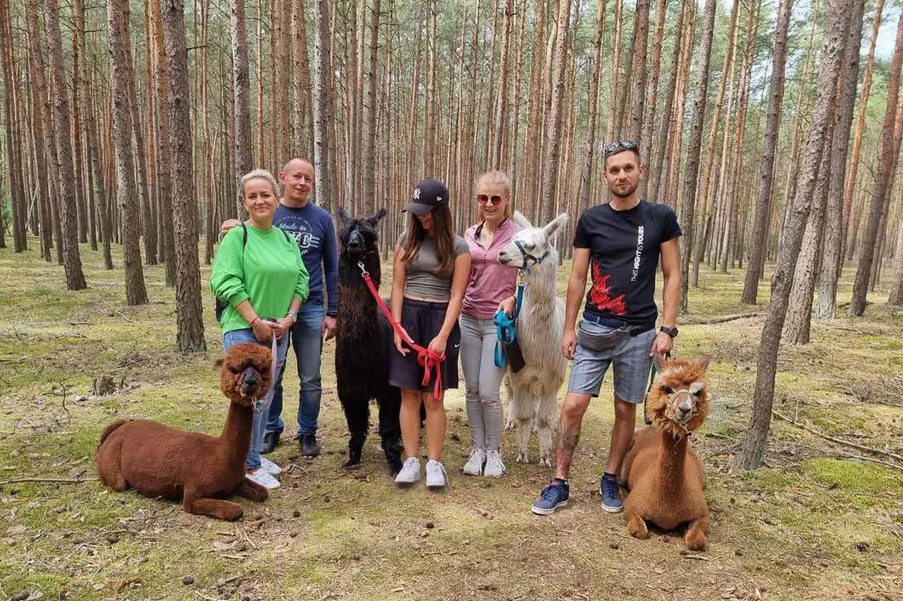 - Relaksująca wędrówka leśnymi alejkami w towarzystwie oswojonych, łagodnych alpak.