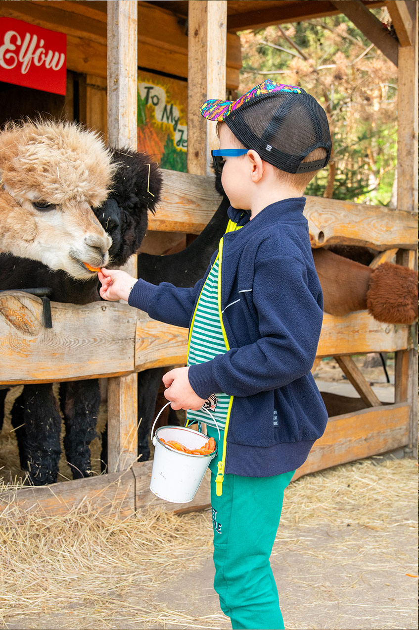 Poznasz tu: alpaki, kucyki, owce, daniele i wiewiórki. Zwierzęta można pogłaskać i karmić karmą z automatów (5 zł).
