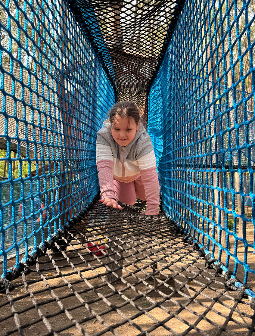 To ogromna siatka zawieszona wysoko wśród drzew – idealna do chodzenia, biegania, skakania i beztroskiej zabawy. Jedna z zaledwie czterech tego typu atrakcji w całej Polsce – koniecznie zabierzcie tu swoje pociechy!